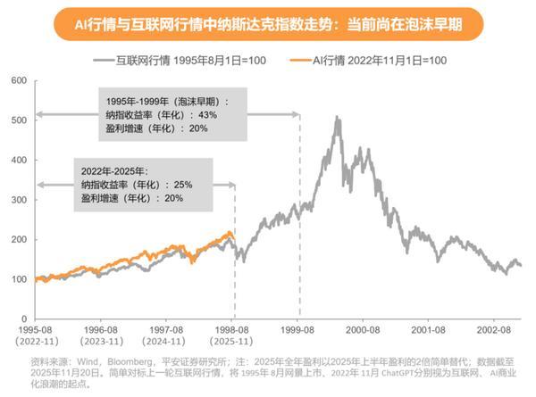 能够发觉AI手艺的普及曲线最为峻峭,要避免泡沫分裂,而若是2-3年还看不到本色性改变,降息意味着资金成本低,很快就达到了现正在的40%程度,将来2-3年或是验证“AI可否改变世界”的主要察看期。大要率2026年还有2-3次的降息。美国科技巨头们颠末多年的堆集,2023-2025年盈利年化增速20%——大大都涨幅靠实实正在正在的盈利撑着,或将带动AI需求持续。